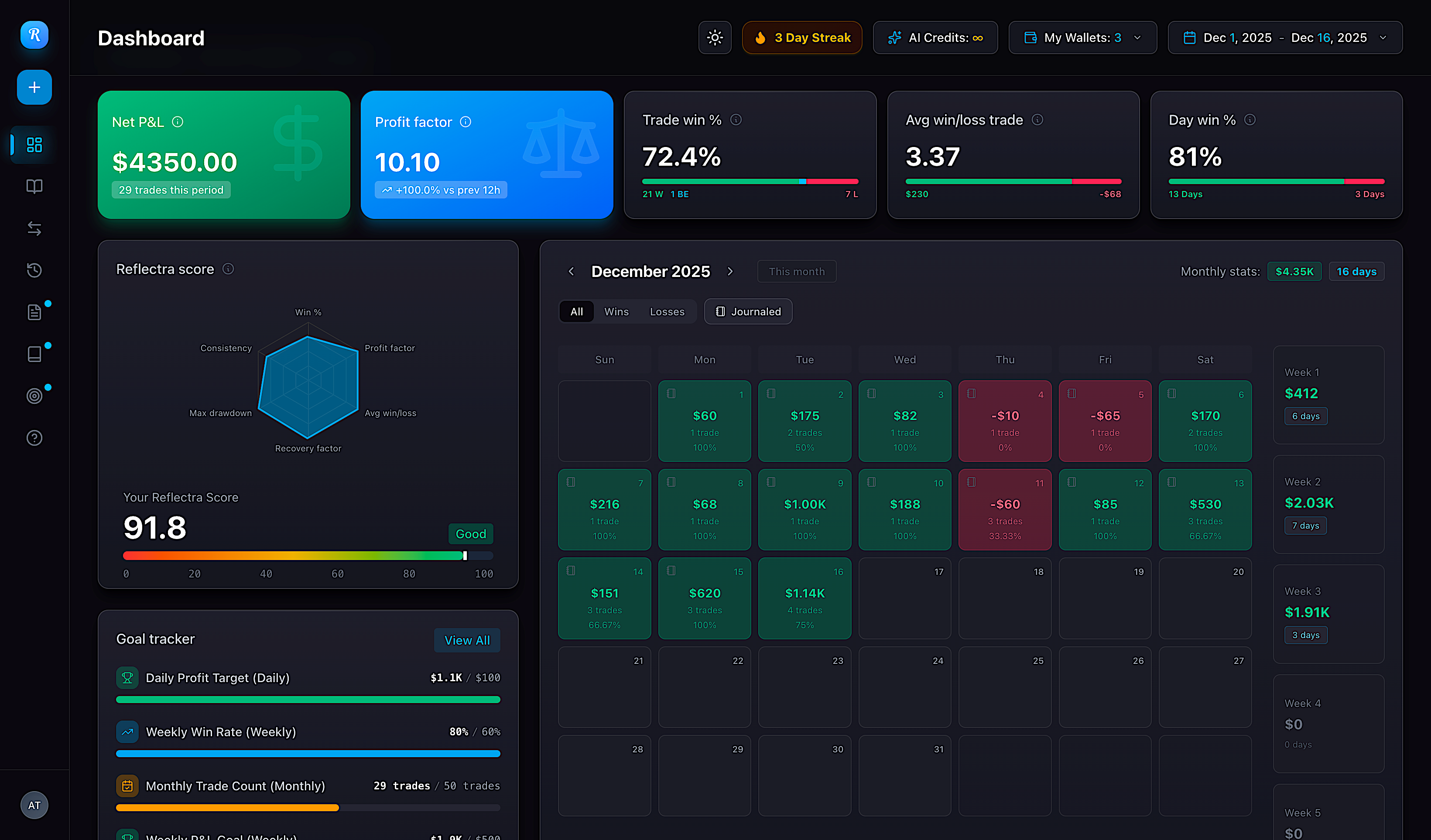 Stop trading blind. Reflectro uses advanced analytics and AI to decode your trading patterns, helping you eliminate mistakes and scale your profitability.